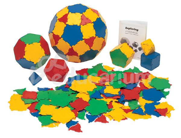 164 elementy w 3 kształtach (40 kwadratów, 100 trójkątów równobocznych, 24 pięciokąty)
