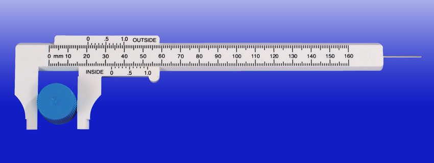 Uczniowska suwmiarka pozwala zmierzyć mniejsze przedmioty w zakresie od 1 mm do 16 cm, zarówno wewnątrz jak i na zewnątrz.