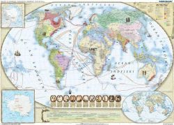 Mapa przedstawia również charakterystyczny i kluczowy dla tego okresu rozwój kompanii handlowych oraz dalsze eksploracje podbitych terenów Nowego Świata. Przybliża także zagadnienie odkryć późniejszych w wieku XIX i XX, w tym wyścigu do obydwu biegunów oraz udział Polaków w odkrywaniu białych plam na mapie świata.
