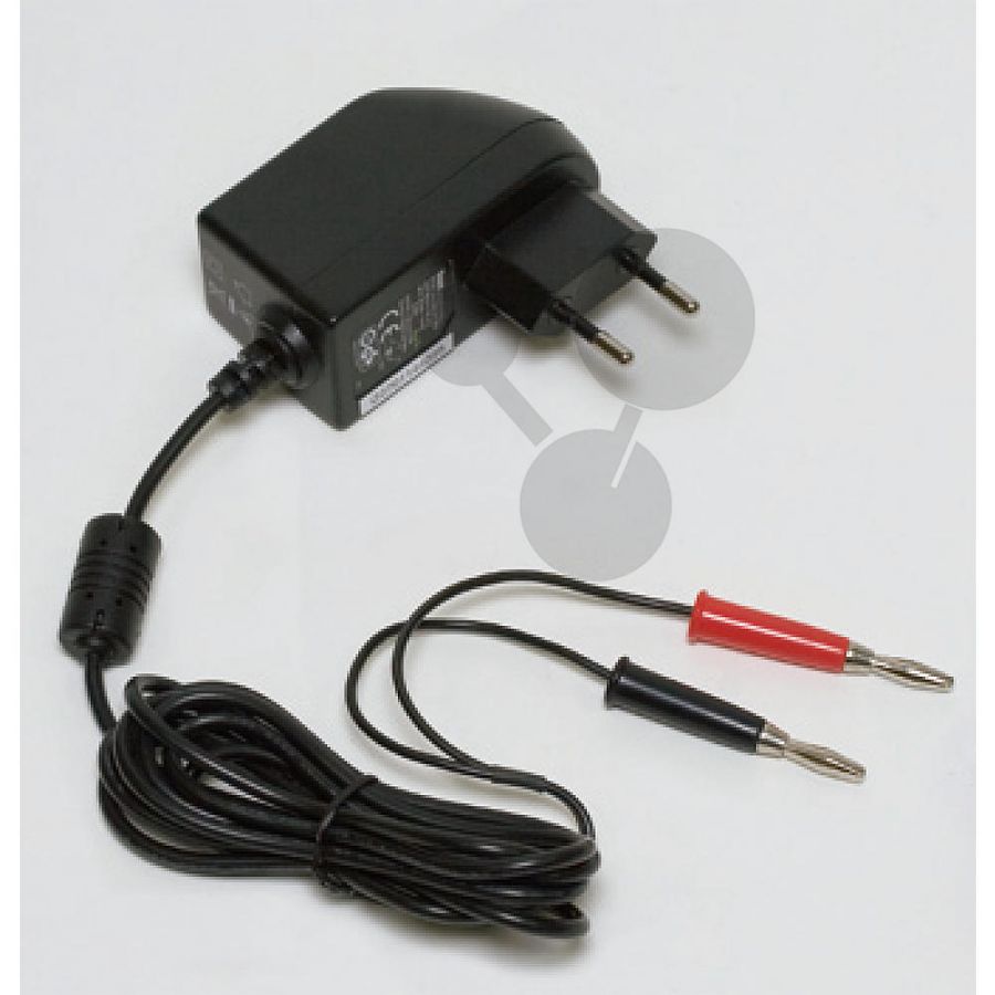 W obudowie z tworzywa sztucznego z wtyczką sieciową i dwużyłowym przewodem podłączeniowym z wtykami 4 mm.