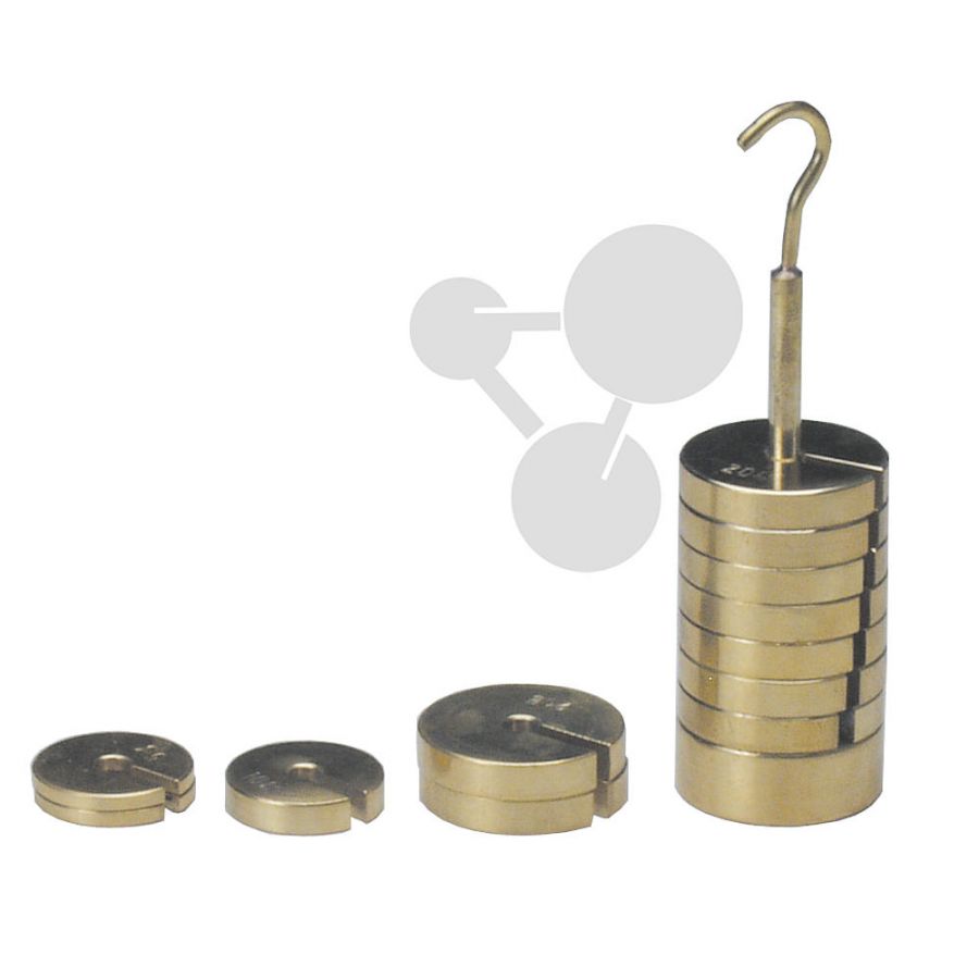 Zaczep 50g, 9 odważników szczelinowych 20g, 1 odważnik szczelinowy 10g, 2 odważniki szczelinowe 5g.