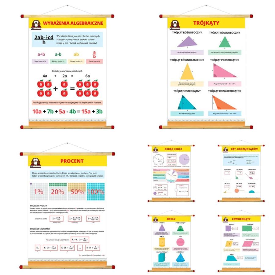 oferujemy zestaw plansz ściennych do matematyki, które są idealnym narzędziem edukacyjnym dla dzieci w wieku szkolnym. Każda plansza zawiera różnego rodzaju zagadnienia matematyczne, takie jak dodawanie, odejmowanie, mnożenie, dzielenie, rachunek procentowy, geometria i wiele innych. Zadania te zostały zaprojektowane w sposób przystępny i łatwy do zrozumienia dla dzieci, dzięki czemu mogą one nauczyć się matematyki w sposób interaktywny i zabawny.
